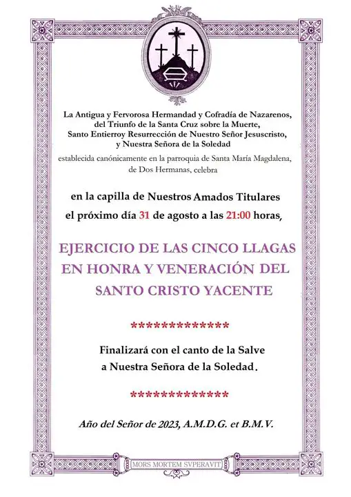 Ejercicio de las Cinco Llagas en honra, memoria y veneración del Santo Cristo Yacente.